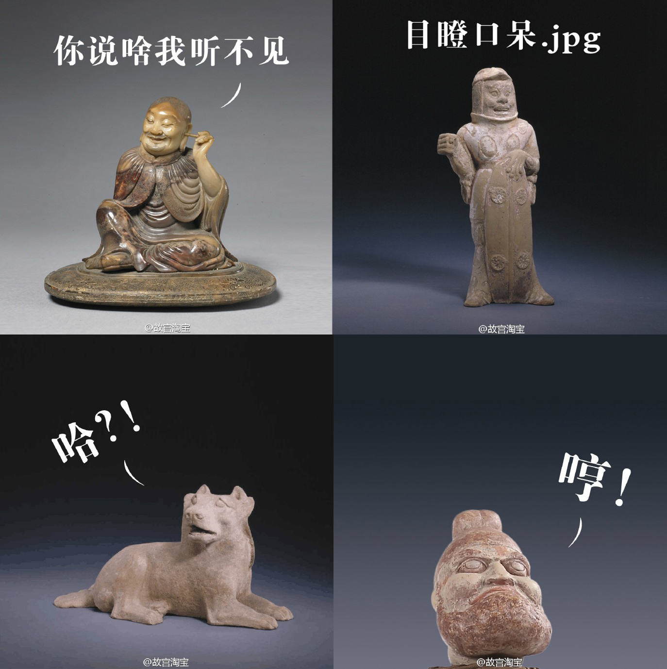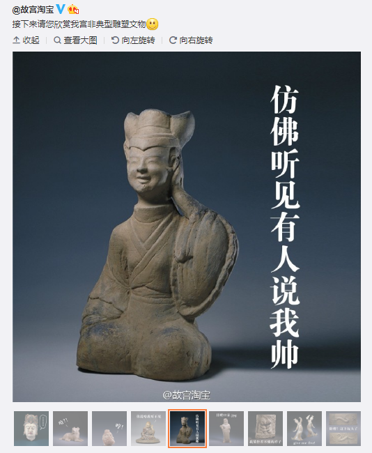 不过,说到做表情包,那是比不过故宫淘宝了。故宫淘宝是故宫文化服务中心的官方微博,自从招了一群“有毒”的自媒体运营和设计师之后,一改以往的刻板印象,变得特别“有意思”。从此看到文物、雕塑都忍不住想要做成表情包。