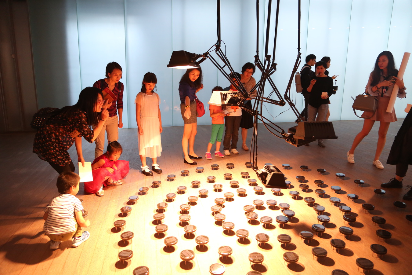 声、光、影对孩子们的吸引力是不言而喻的,就像比起书孩子们更喜欢看动画片。新媒体作品通常会用到电子设备、高科技,充满了科技感,由于其更在乎观者的感受,所以通常作品会触及到观者的各种感官。对生活经验少、情感经历少的孩子而言,触及到各类感官的方式更能让孩子们体会到作品想要表达的内容。