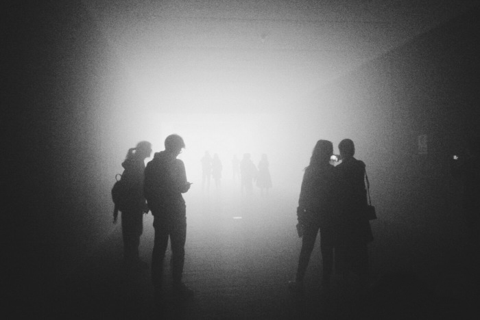 比如《生声不息》的《雾》这个作品,整个展览区域都是机器造的雾,还有声光影,胆小的姑娘走进去还会害怕,这,你看懂了吗?因为看不清,拍照很好看;因为光很暗,可以牵着走。