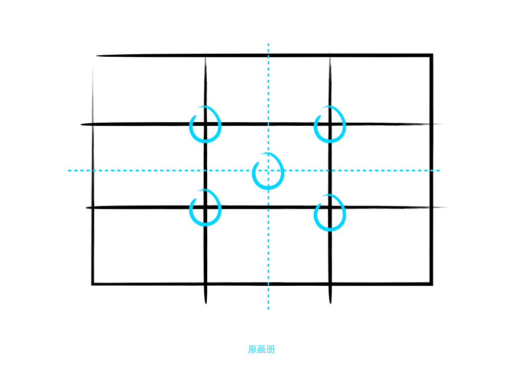 最后是这种对构图、比例稍微有点要求的类型,或者你可以打开辅助线,按照下面的图示例,把想要拍的东西,放在图上这几个蓝圈的位置上。